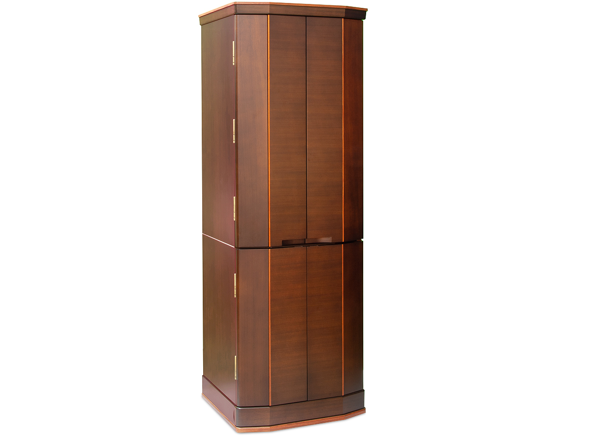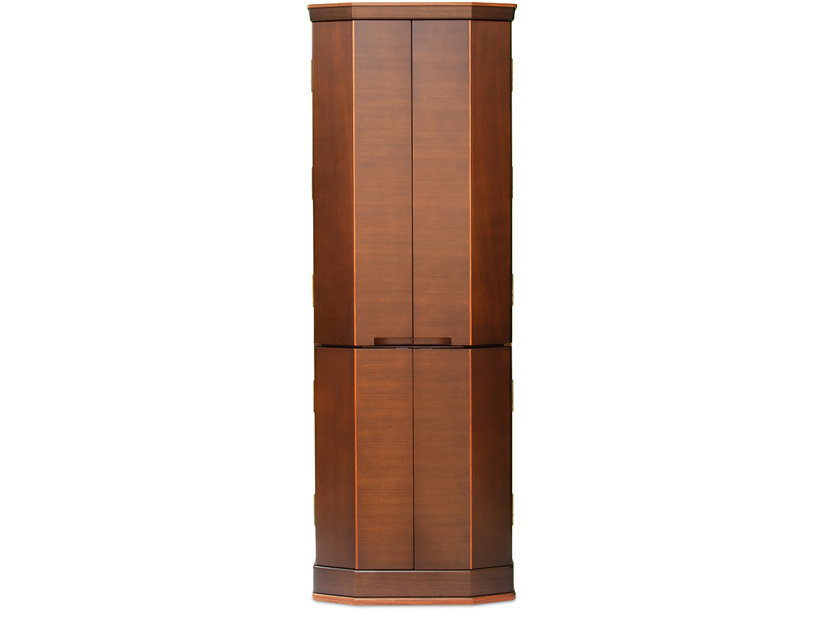 欄間部分には桜花びら象嵌入り、扉の側面から正面へかけてカリン材を使用しアクセントになっています。