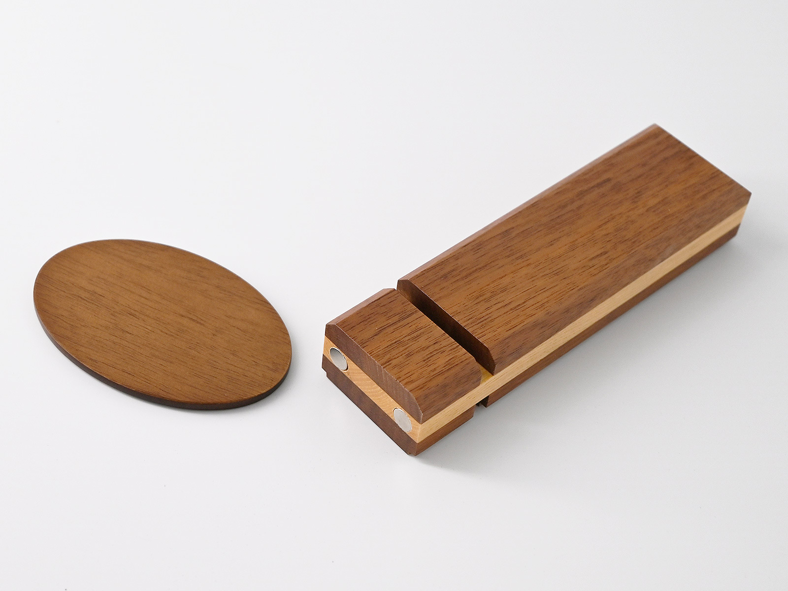 高級木材のウォールナットと栓を使用し、伝統技術「はぎ付技法」を用いられたお位牌は、デザインとサイズ感に拘った仕上がりとなっています。