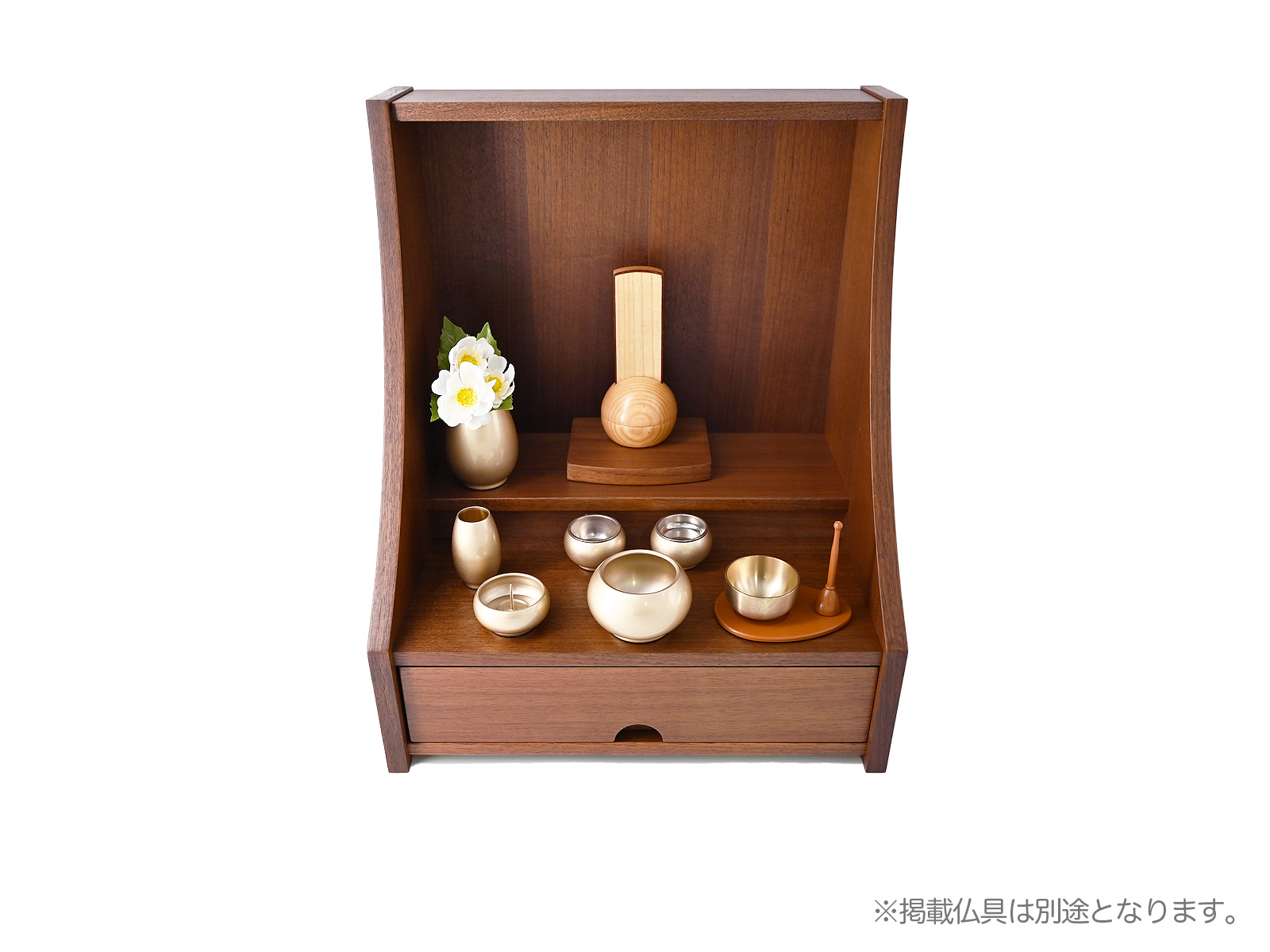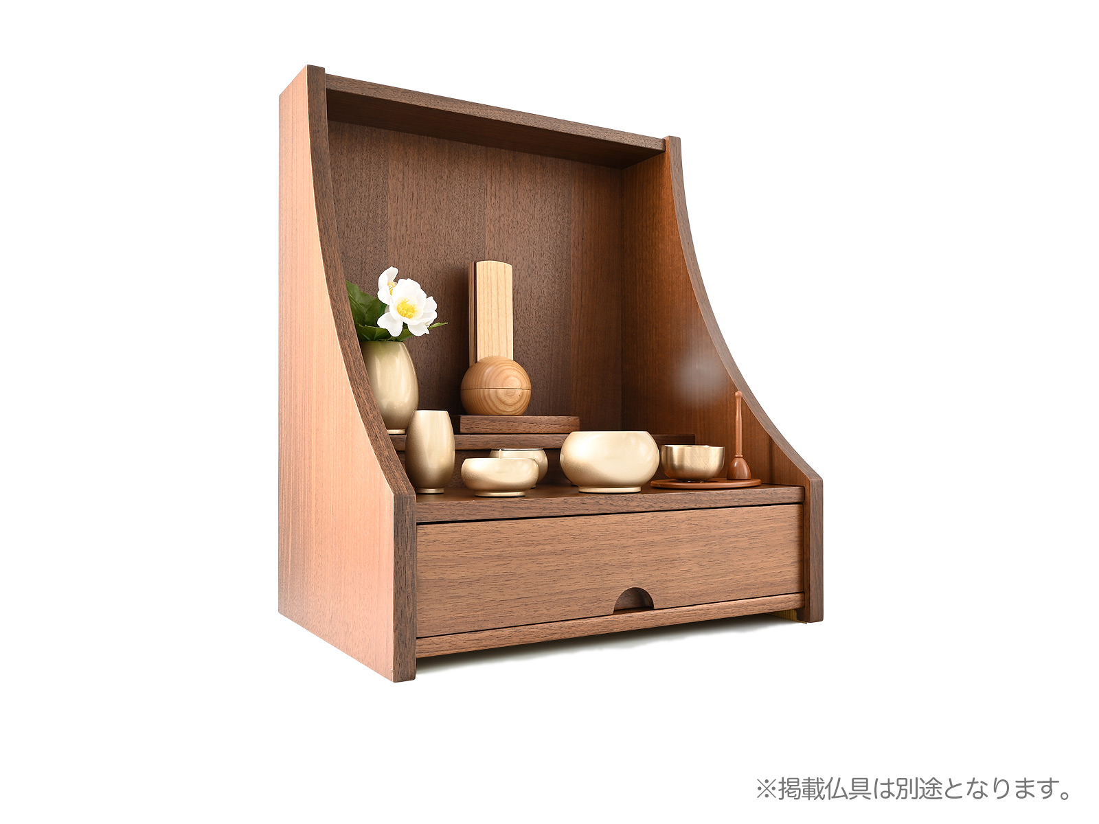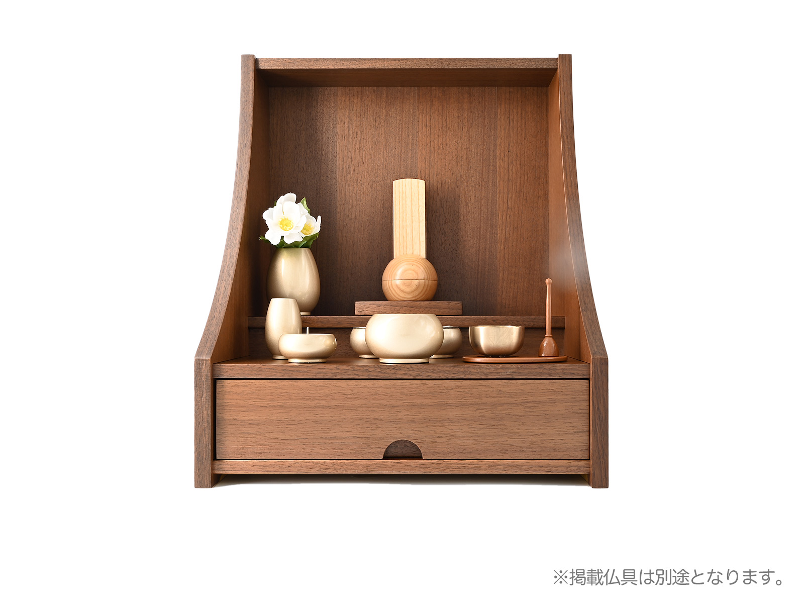 手元供養ステージ 15号 御供養仏壇は、モダンでシンプルなデザインがリビングにもぴったりな手元供養壇です。本尊台は取外し可能で、お仏壇下部には引出し付きです。