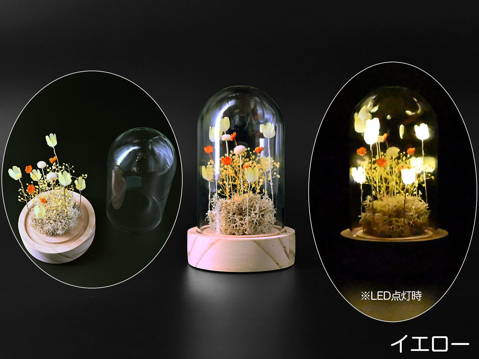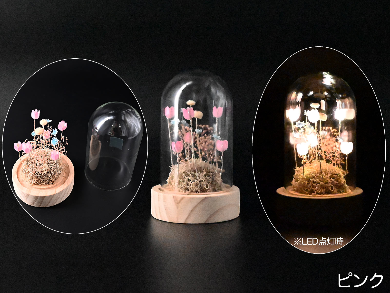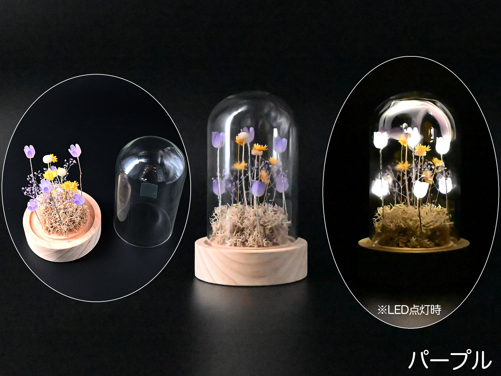 - 材質:土台 - 木製、ドーム - ガラス